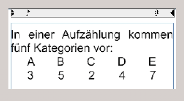 Zu Beginn der Zeile wird zweimal die Tabulatortaste gedrückt. Zwischen allen Elementen, die auf Block ausgerichtet werden sollen (in unserem Falle die Symbole in mitfließenden Bildcontainern oder die Versalien), muss die Leertaste benutzt werden. Ist die Eingabe auf einer Zeile abgeschlossen, wird mit Tabulator zur nächsten geschaltet. Versuchen Sie’s doch einfach mal. Dann erinnern Sie sich daran, wenn Sie später einer sinnvollen Anwendung begegnen.