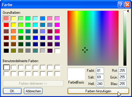 Um in RagTime 7 Farben zu definieren, ist es bei offenem Inventar am einfachsten, das Symbol «Farben» doppelt anzuklicken. Dann springt das Hilfsmittel-Fenster «Farben» auf (siehe Abb. 1.35), in welchem Sie die Einstellungen vornehmen können.
