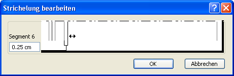 Schließlich lässt sich auch noch eine Vorgabe für die «Strichelung» machen. Wählen Sie eine der Vorgaben oder «Andere…». Damit öffnen Sie ein Fenster, in welchem die letzte gewählte Strichelung vorgegeben ist. Mit jeder vertikalen Linie lässt sich die Länge eines Segments einstellen, mit den geraden der Anfang und mit den ungeraden der Schluss eines Strichs. Mit der vertikalen Linie ganz rechts können Sie zusätzliche Segmente schaffen, indem Sie diese nach links ziehen (siehe Abb. 1.43). Auch hier muss das Ergebnis „erprobt“ werden.