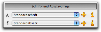 Hier (siehe Abb. 1.51) lassen sich mit Einblendmenüs Schrift- und Absatzvorlage auswählen/zuordnen. Das ist zwar etwas umständlicher, als mit den separaten Paletten, wo alle Vorlagen ständig aufgeführt sind und durch Anklicken ausgewählt werden können. Dafür kann mit Klick auf
