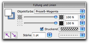 Die wichtigste Vorgabe für Linien ist sicher die Breite. Benützen Sie für zu druckende Linien eine minimale Breite von 0,5 pt. Noch schmälere Linien bleiben möglicherweise im Druck unsichtbar. Beim professionellen Druck können Sie je nach Farbe (Helligkeit) feiner gehen. Da ist eine vorherige Absprache mit dem Drucker sinnvoll.