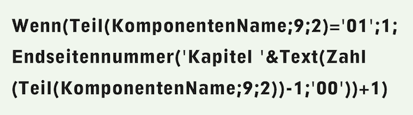 Die Formel setzt voraus, dass alle Layoutkomponenten mit den Namen «Kapitel kk» (kk = 2-stellige Kapitelnummer) benannt werden (siehe Abb. 4.60). Mit dieser Formel müssen Sie sich in den einzelnen Layouts nicht mehr um die Verknüpfung der Nummer der ersten Seite mit der Endseitennummer des vorangehenden Kapitels kümmern – die Formel macht das für Sie.