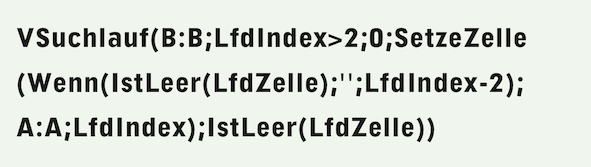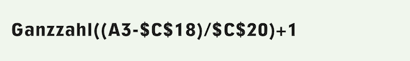 Das Rechenblatt «R Steuerung» (siehe Abb. 4.59) sieht etwas anders aus als beim einfachen Dokument aus Kapitel 3 „Gut zum Druck nach Noten“. In Zelle A1 wird eine Zahl stehen – setzen Sie vorerst «70» ein und in Zelle B1 fügen Sie die Erläuterung hinzu: «Anzahl einzeilige Absätze pro Seite». Das erleichtert Ihnen später den Klimmzug mit der Leerseite. Die Formel in Zelle C1 (Formel 4.12), welche die Kapitelnummern berechnet, ist ein Vertikalsuchlauf und setzt die Kapitelzahl fortlaufend in Spalte A, sobald in Spalte B in der jeweiligen Zeile ein Eintrag mit einem Kapiteltitel erfolgt. In Zelle B2 setzen Sie als Überschrift «Kapiteltitel». Darunter, ab Zelle B3, tragen Sie dann Ihre Kapiteltitel ein.