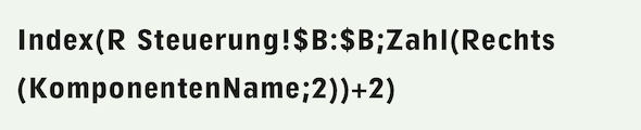 Erzeugen Sie nun eine Textkomponente, die Sie «Text kk» nennen. In dieser Komponente beginnen Sie mit der Absatzvorlage «Überschrift» und geben mit «Text ➝ Absatznummer ➝ 1 - Arabisch» eine Absatznummer ein, gefolgt von einem Leerzeichen oder Tabulator, je nach Ihrem Layoutwunsch. Dann geben Sie direkt anschließend die Formel 4.14 ein. Lassen Sie sich auch hier nicht stören, dass die Formel im Moment einen Fehlerwert liefert. Sie wird in den einzelnen Kapitellayouts die Kapiteltitel aus dem Rechenblatt «R Steuerung» holen. Schließen Sie die Überschrift mit Absatzende ab, und geben Sie einfach mal «Text.» ein, gefolgt vom Zeichen «>». Wählen Sie dieses Zeichen aus und geben Sie ihm den Namen «Textende xx». Weisen Sie dem Zeichen zudem die Füllvorlage «Nichtdruckende Füllung» zu. Gleich dahinter folgt Formel 4.15. Ignorieren Sie, dass auch diese Formel einen Fehlerwert erzeugt. Die Formel bewirkt, dass auf das Zeichen «>» so viele Leerabsätze folgen, wie in der Zelle A1 des Rechenblattes angegeben sind, sofern dieses Zeichen (als Textende des Kapitels) auf einer ungeraden Seite steht.