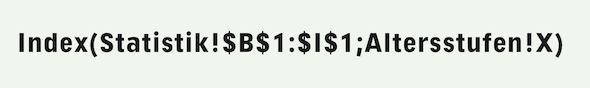 Natürlich kann ggf. auch der ganze Titel vom Inhalt des Rechenblatts «Statistik» abhängig gemacht werden, wenn nicht nur ein Element – in unserem Fall die Altersgruppen – sondern der ganze Titel ändern soll.