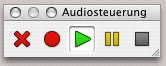 Eine Tonkomponente, welche bespielt ist, erscheint mit einer grünen Punkttaste im Zentrum. Zum Abspielen drücken Sie auf diesen grünen Punkt. Es gibt auch eine neckische Palette: «Fenster ➝ Paletten ➝ Audiosteuerung». In Abb. 4.56 unten ist zu sehen, wie sich (von links nach rechts) der „Toninhalt“ löschen lässt sowie Aufzeichnung, Wiedergabe, Pause und Stopp möglich sind. Der Vollständigkeit halber muss noch erwähnt werden, dass sich unter «Dokumenteinstellung ➝ Ton» die Qualität noch verändern lässt.