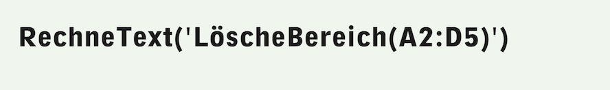 Natürlich ist das mit einem LöscheBereich-Befehl relativ einfach zu bewerkstelligen. Nur – wie groß ist denn der Bereich? Mit der Funktion «Anzahl(C:C)» wird die Anzahl vorhandener Tabelleneinträge ermittelt. Wenn die Tabelle bereits leer ist, dann liefert diese Funktion den Wert 0 oder «Falsch» und der Rest der Formel wird dank der Wenn-Funktion gar nicht ausgeführt. Bemerken Sie, dass auch hier kein Vergleich für die Bedingung herangezogen wird. Nicht nur der Wert 1 wird durch RagTime als logisch «Wahr» interpretiert, sondern alle Werte außer 0. Einzig dank der „Power-Funktion“ «Bereich» ist es möglich, die Bereichskoordinaten berechnen zu lassen. Aber leider lässt sich diese Funktion nicht verschachtelt innerhalb der Funktion «LöscheBereich» verwenden. Das gelingt nur mit einem Trick: Dieser ganze Formelteil muss als Text zusammengestellt und dann mit der MetaFormel-Funktion «RechneText» ausgewertet werden. Der berechnete Text ergibt, bei vier Tabelleneinträgen, die folgende Formel, die gewissermaßen Teil der Formel F-3.10 wird: