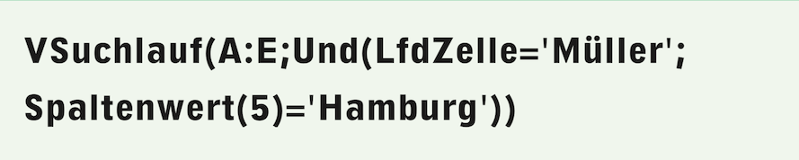 Enthält die Tabelle eine Kopfzeile, so ist das in diesem Fall bedeutungslos, da dort sicher nicht «Müller/Hamburg» steht. In anderen Fällen müsste der Und-Funktion eine weitere Bedingung beigefügt werden:
