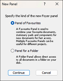 Do you work on multiple projects with project-specific stationery pads and your own frequently used documents? Then it is practical to define your own Foyer panel for each project. Click on