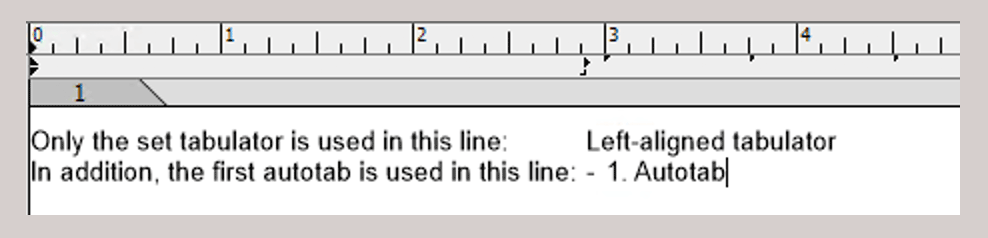 It determines the distance of the “automatic tabs”, which always apply to the right of the last set tab until the end of the line. If the tab markers in the text ruler disturb you (see Fig. 1.33), enter the value «-0.01 cm» for this first tab. Then all predefined tab jumps disappear. However, we find it quite practical if a tab can also simply be used to neatly align text in two consecutive lines under each other without having to define a new style sheet immediately, and the text mark does not jump to the end of the line with the tab. But you can also insert tabs manually afterwards. However, your paragraph style sheet is bypassed and you have a «+» at the end in the name of the paragraph style sheet, which simply means that the paragraph style sheet was manually bypassed in some way.