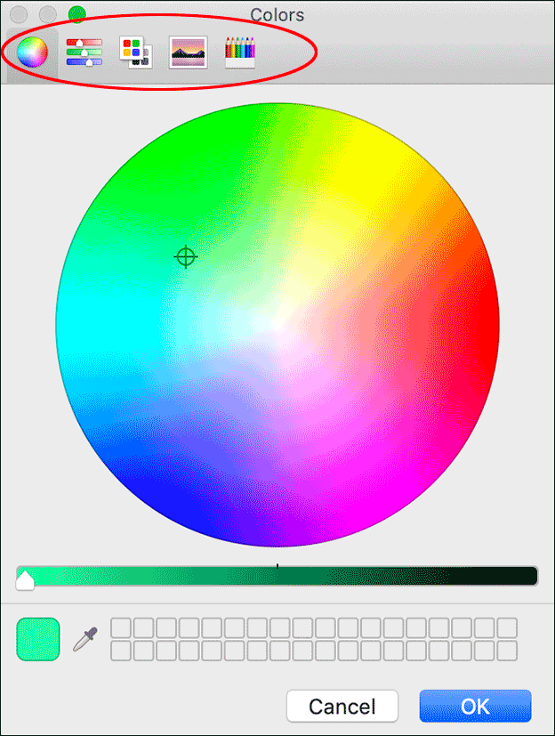 On the Mac, you can select between several such tools directly in a toolbar or adopt the color of any point in the layout, also in an image, with the magnifying glass. Depending on the chosen tool, further options are available.