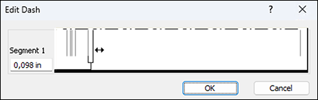 Finally, a specification for the «Dashes» can also be made. Select one of the specifications or «Other…». This opens a window in which the last selected dashing is preset. With each vertical line, the length of a segment can be set, with the even ones the beginning and with the odd ones the end of a dash. With the vertical line all the way to the right, you can create additional segments by dragging them to the left (see Fig. 1.43). Here too, the result must be “tested”.
