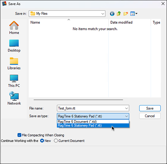 Forms no longer need to be stored in a special folder provided for this, as in earlier RagTime versions, to be able to access them directly. The storage location of the stationery has no meaning anymore, since stationery can be included in Foyer panels, no matter where they are located.