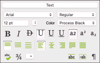 At the top in this section (see Fig. 1.50), there are the pop-up menus for the font, its cut, size, and color. Below, various style features can be turned on and off. Interesting here is that the rarely used styles «Small Caps, Outlined, Shadow, Kuromaru, Underline Words» are missing, and instead switches for the otherwise only laboriously accessible possibilities for vertical positioning (normal position, superscript, subscript) are available.