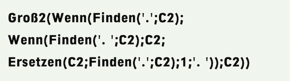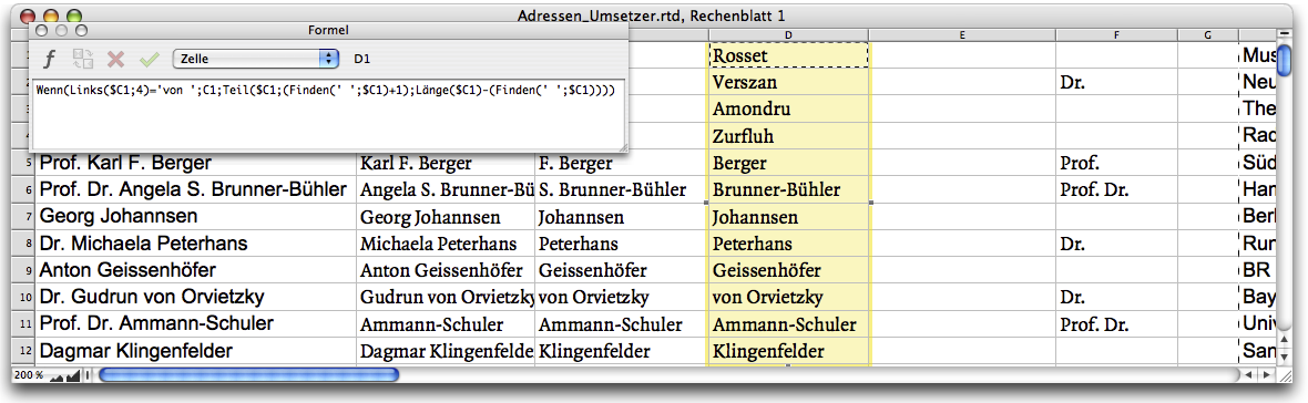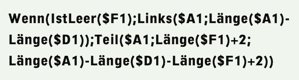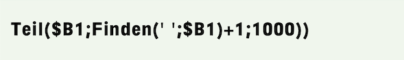 The functions «Mid» and «Length» refer, just like «Right» and «Left», to texts. This allows word parts or individual characters to be extracted from them and used as “text modules” for other cell contents. In our case, we use them in formulas to automatically separate prefix, first names, and last names.