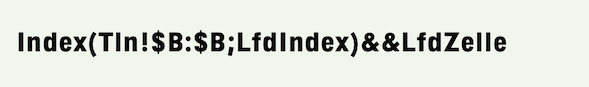 Before we get to the name, we would like to point out here, as in the formula chapter “Formulas Part 3: In full swing”, that we deliberately avoid using the «ColumnValue» function. If, for example, we had used the seemingly simpler column value function (i.e., «ColumnValue(5)» for column E) in the condition according to Formula 2.42 instead of the somewhat complex index function, and then suddenly inserted another column into the table for some reason, our entire formula structure would have collapsed! RagTime cannot know that the absolute number «5» is actually meant to be relative, and it cannot automatically adjust it in the event of such a change. Have you ever tried to identify such an error and then find all the places that need to be corrected? We clearly prefer the index function, whose column reference is automatically adjusted if necessary.