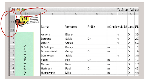 Even more essential: if you delete entire columns or rows, it also deletes the relevant columns or rows in all other planes. This means that you can only make changes within cells or cell ranges. It is therefore a matter of personal preference whether you prefer to create a separate spreadsheet or even a separate document for each target group. And finally, you can also accommodate all addresses in a single spreadsheet and a single plane. Then you will probably assign your own code for each address group in a column to be able to access it in mail merges. Regardless of how you organize yourself, the topic of headers or title columns is interesting regardless.