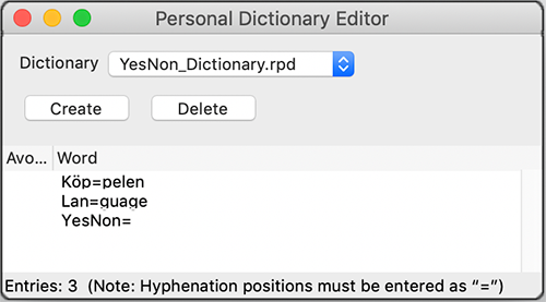 In the dictionaries where you record your new words, hyphenation commands are also possible. Enter «=» between the syllables to be hyphenated (without the quotation marks), so the word is hyphenated exactly there.