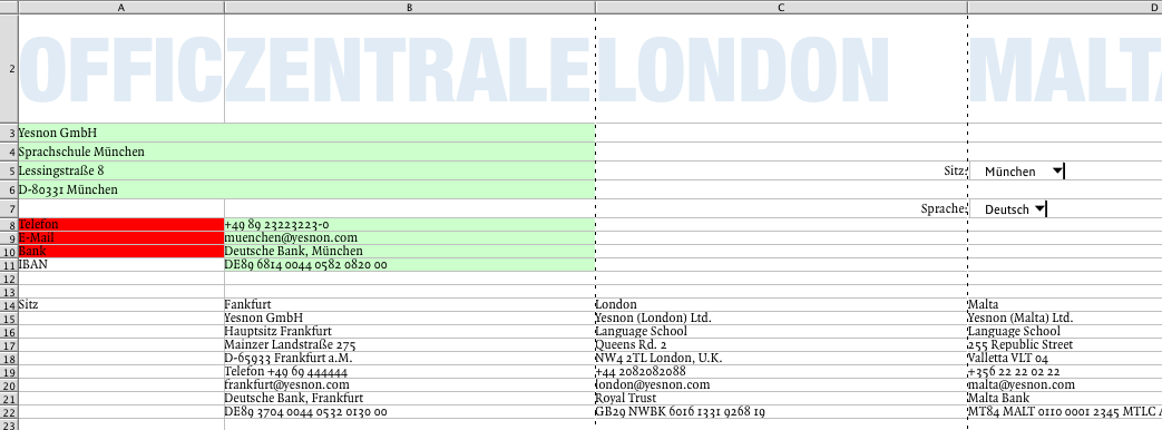 The private language school “YesNon” is a franchise company with currently five schools: In London, Malta, Montpellier, Munich, and Zurich. All these schools participate in the success and are supported by the headquarters in Frankfurt in every respect. From here, marketing, quality control, and billing are also managed.