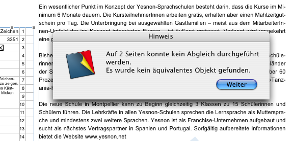 To conclude this brief excursion into the functions of object equalization, here is a rather cynical remark: do you remember that we originally built the example document on a master layout? And there – that is only logical – «Equalize Objects» doesn't work anyway (see Fig. 2.75). So we could have simply added our award notice to the master layout… However, we deliberately detached the document from the master layout just to demonstrate the principle of object equalization.