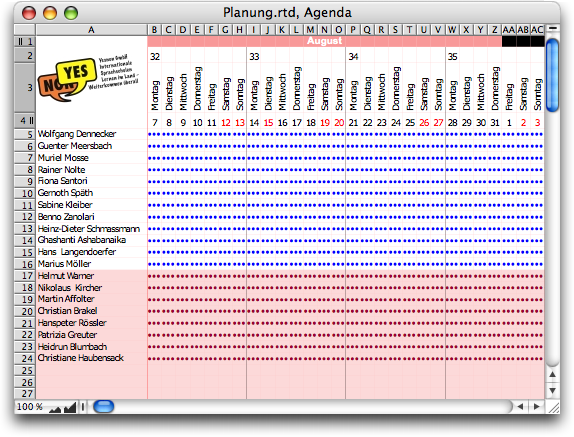 Did you break a sweat? So did your computer! On a MacBook Pro with a 1.83 GHz Intel Core Duo processor and 2 GB RAM, it took 35 seconds to calculate the calendar and planning with the participant data shown in Fig. 2.142.
