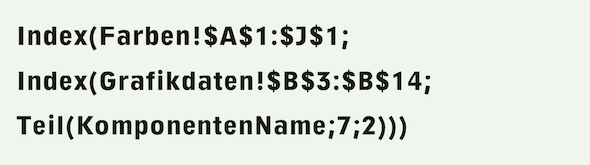 Let's now take a look at the infographic in Fig. 4.2. Here we have two representations of the same data. Both the basic data and the finished graphs are “packaged” in the spreadsheet. This has the advantage that you always have all the necessary information together. Even if you drag the spreadsheet into the Inventory of another document, the other components come along immediately. At the same time, this representation provides an immediate overview if you need to change something in the basic data. This is because you can see the effects on the graphs inserted in the merged cells from K1 or S1 in the same window. In our case, the graphs are not placed directly in the cells, but are also located within a drawing component. The reason for this is that we do not yet know whether additional text or image information should be added to the graph. For example, comments, legends, or images. Drawing components give you more design freedom. Either way, whether you insert the graphs directly into the spreadsheet or within a drawing component, they can be easily imported into different layouts using a formula reference. For example, one time for a slide show and another time for a report. In any case, the structure for this first graph is less complex than it may appear at first glance.