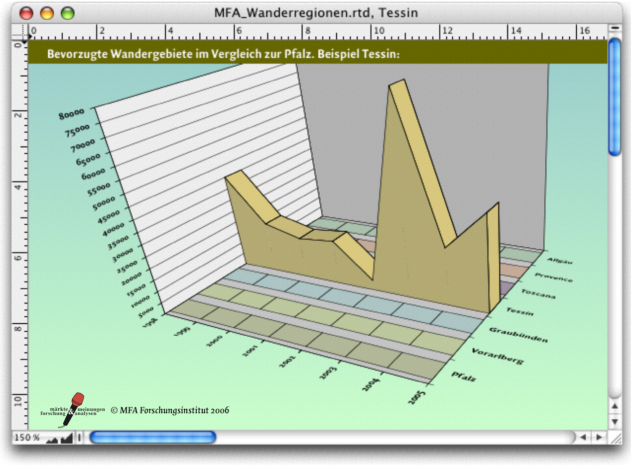At the market and opinion research institute MFA, the preparation and presentation of data is given just as much importance as its collection and analysis. Statistics are only one form of presentation; alongside them are charts and diagrams to clarify complex issues and illustrate trends. If you ask us for our opinion, this is exactly the ideal basis for presenting some new aspects of RagTime here.