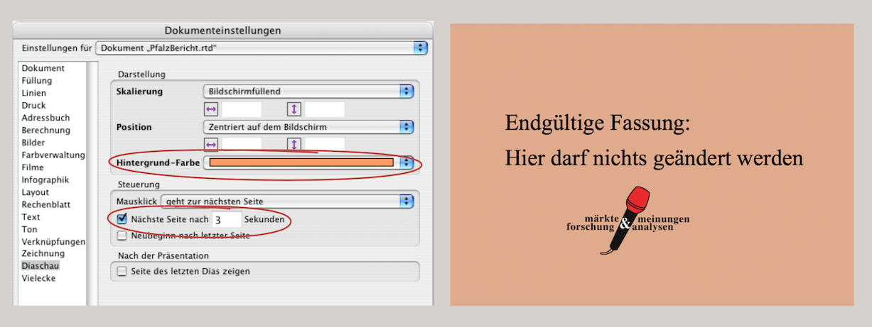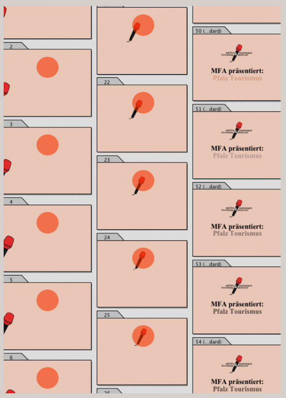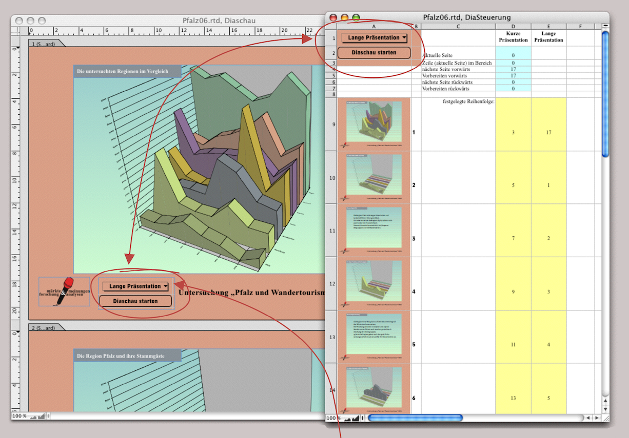 English or German, etc. After the more theoretical explanations, here is another example from everyday life. The market research institute MFA presents a study on the reasons why vacationers repeatedly prefer the same region. The presentation takes place in front of various committees. Once in front of the client's managers and decision-makers and other times in front of employees. This means that different versions of the presentation are required, and it should be possible to select them at the touch of a button.