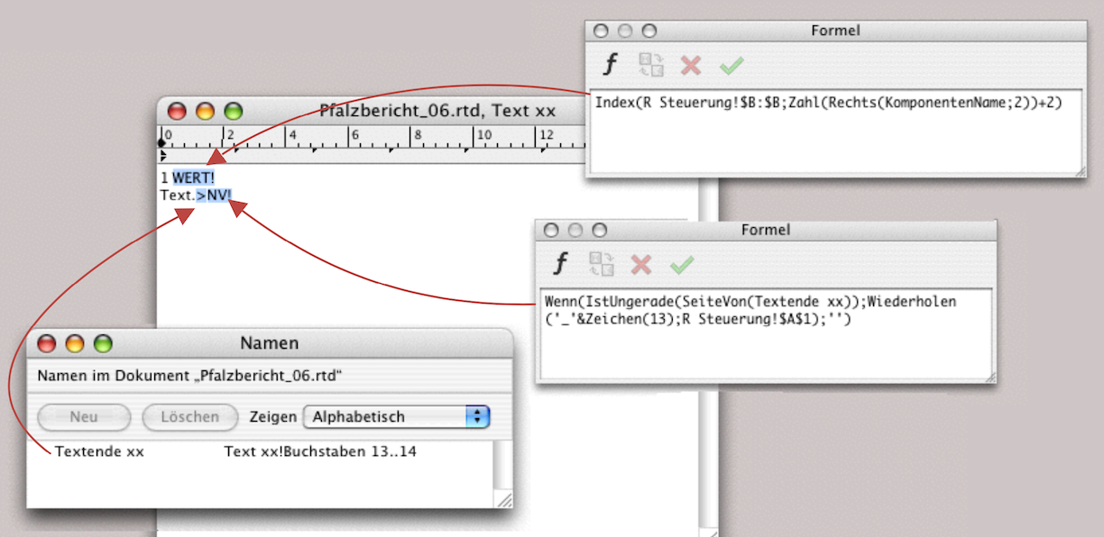 One more note: as we have noticed when working with such documents, RagTime occasionally displays the error «NV!» at the end of the text, even though everything is defined correctly. In this case, use the command «Extras ➝ Update Cross Page Functions» and everything will be fine again!