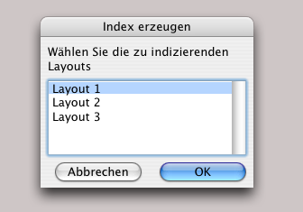 Before we go into detail, here is an important note: the index is a fixed inventory of your entries. It has no relative relationship to the layouts. This means that if you insert or delete some text sections in your layout, rearrange entire sections, or even change the starting page number of the layout, some terms marked for the index will end up on other pages. The page references in the index will then no longer be correct. The «Generate Index» command must then be executed again (the markings themselves are not lost).
