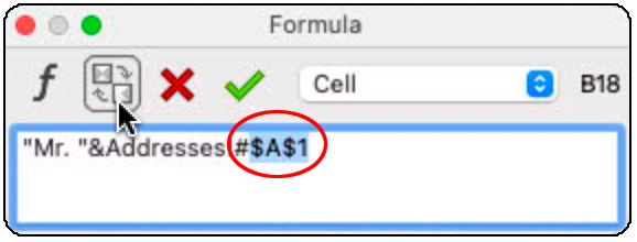 If you want to edit a formula, you must select the result and open the formula palette again. For spreadsheet cells, you can simply click on the cell; in text, you must select exactly the result, no character more or less. «Windows ➝ Show ➝ Formula Borders in Text» can help you with this. If you want to undo a change before you have completed the formula entry, click on the symbol