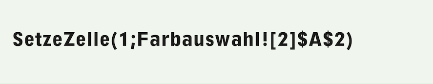 The target range for the «SetCell» command is column A of the auxiliary sheet, addressed with the current index of the search. The value used is taken from the index function of row 2 of the «R_Lib» spreadsheet. The row index is 1, since only this row is relevant. The column index corresponds to the running index of the search run. The position is determined by the selection made with the first pop-up menu.