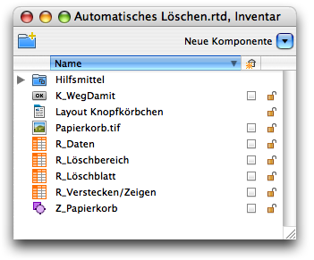 As with hardly any other RagTime component, it is worthwhile creating an archive for buttons. The prerequisite for this is that each button is precisely documented in terms of its function. When archiving, do not forget to copy all components that the button refers to in any way.