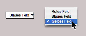 Fig. F-2.29 shows the first pop-up menu in all three positions on the left and the second pop-up menu with the corresponding selection, or rather its first line, on the right. You can use this arrangement to offer authors with their works for selection, or movie titles with the actors, or … The limits here are not the areas of application, but rather the complexity of the formula for the second button. Even for a private library (in the example with authors and works), the number of areas in the selection function would be far too large to be even remotely manageable.