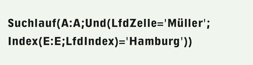 However, the condition in the function can also be more complicated. For example, if you want to know how many «Müller» are in the table who live in Hamburg, the formula is as follows, assuming the place of residence is in column E of the table:
