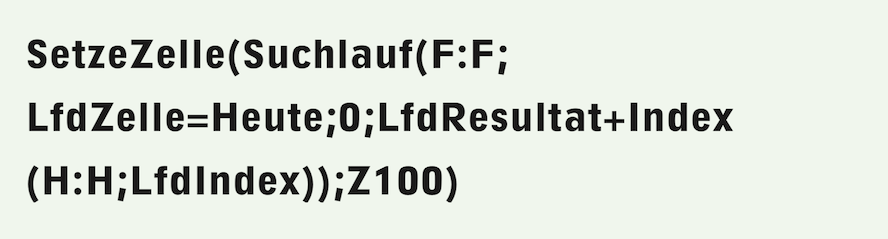 The first subformula can activate another control cell, which in turn releases the next subformula. In this way, any number of subformulas can be strung together. This approach makes troubleshooting much easier. Adding further sub-steps does not affect the formulas that have already been tested. The documentation for each of the sub-steps is also independent of the other sub-steps. The prerequisite is, of course, that each sub-formula is a complete formula in itself, so that the formula entry can be completed at all.