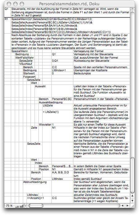 Unfortunately, the individual functions in the RagTime formula palette cannot be structured or supplemented with comments. As is well known, formula entries must be strung together without spaces or line breaks. This makes them difficult to read and analyze.