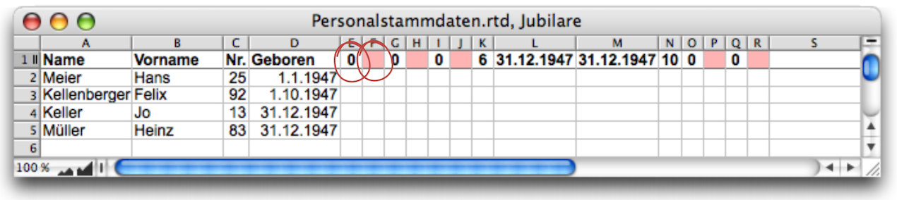 Can the effort we are going to put into solving this problem be justified at all? Of course, we could have transferred all personnel data to the anniversary table during the last search. A table created in this way can then be easily sorted by date of birth using the menu command. Transferring the data using the SetCell command has the advantage that there are no formulas in the table that could cause problems when sorting.